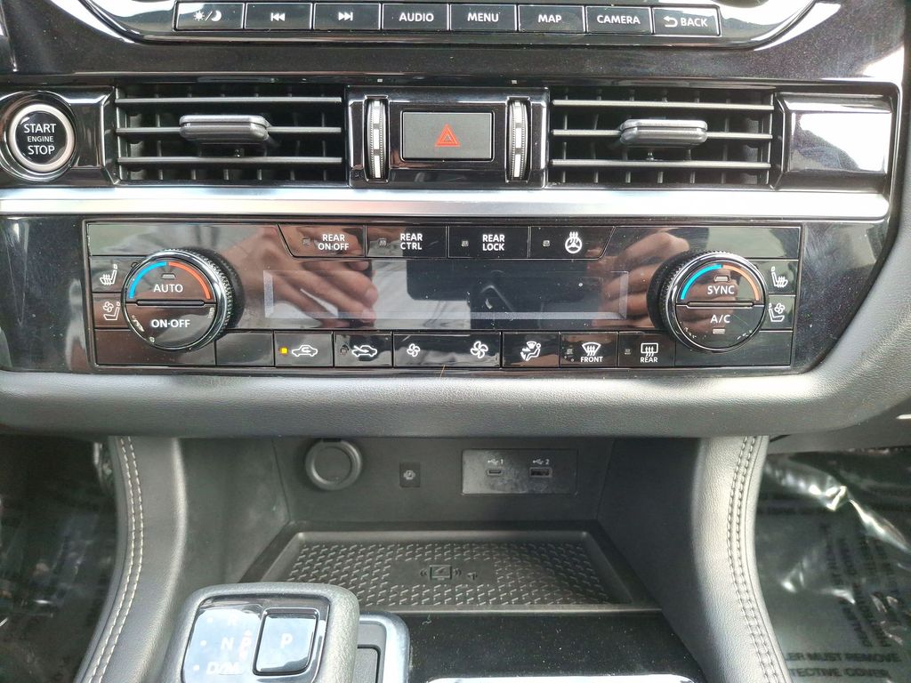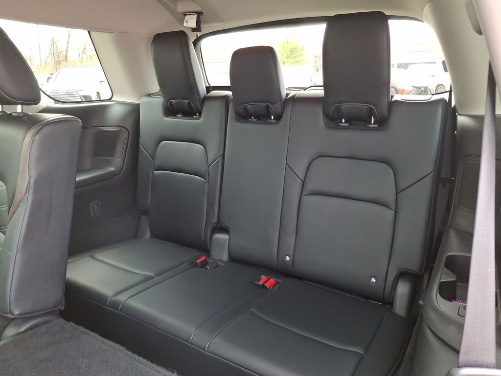 13 Speakers, 3rd row seats: bench, 4-Wheel Disc Brakes, ABS brakes, Alloy wheels, AM/FM radio: SiriusXM, Auto High-beam Headlights, Auto tilt-away steering wheel, Auto-dimming Rear-View mirror, Automatic temperature control, Brake assist, Cross Bars, Delay-off headlights, Electronic Stability Control, Exterior Parking Camera Rear, Four wheel independent suspension, Front dual zone A/C, Fully automatic headlights, Garage door transmitter: HomeLink, Heads-Up Display, Heated & Cooled Front Bucket Seats, Heated door mirrors, Heated rear seats, Heated steering wheel, Illuminated entry, Memory seat, Navigation system: NissanConnect Navigation, Panic alarm, Power door mirrors, Power driver seat, Power Liftgate, Power moonroof, Power passenger seat, Power steering, Power windows, Rain sensing wipers, Rear air conditioning, Rear window defroster, Reclining 3rd row seat, Remote keyless entry, Security system, Speed-sensing steering, Speed-Sensitive Wipers, Spoiler, Steering wheel memory, Steering wheel mounted audio controls, Telescoping steering wheel, Traction control, Turn signal indicator mirrors, Wheels: 20" Machined Alloy w/Dark Met Gray Finish.